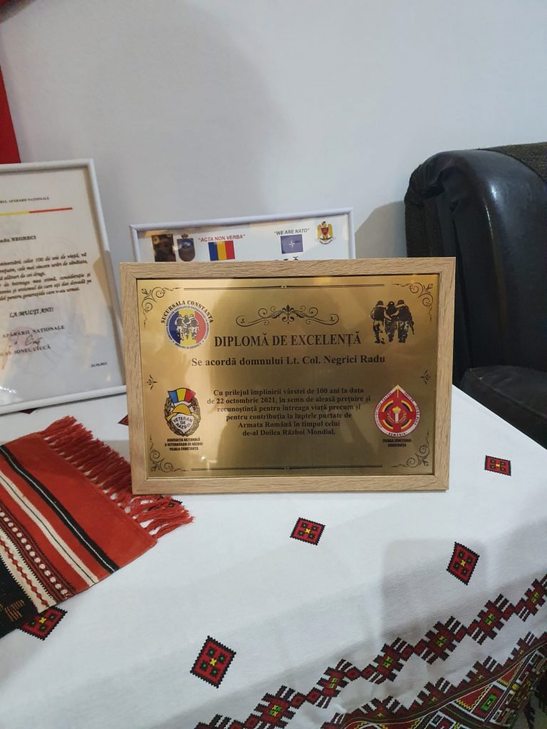 Astăzi, 22 octombrie 2021, am fost onorați să fim oaspeții venerabilului veteran de război, Radu Negrici, cu ocazia împlinirii unui centenar de viață.